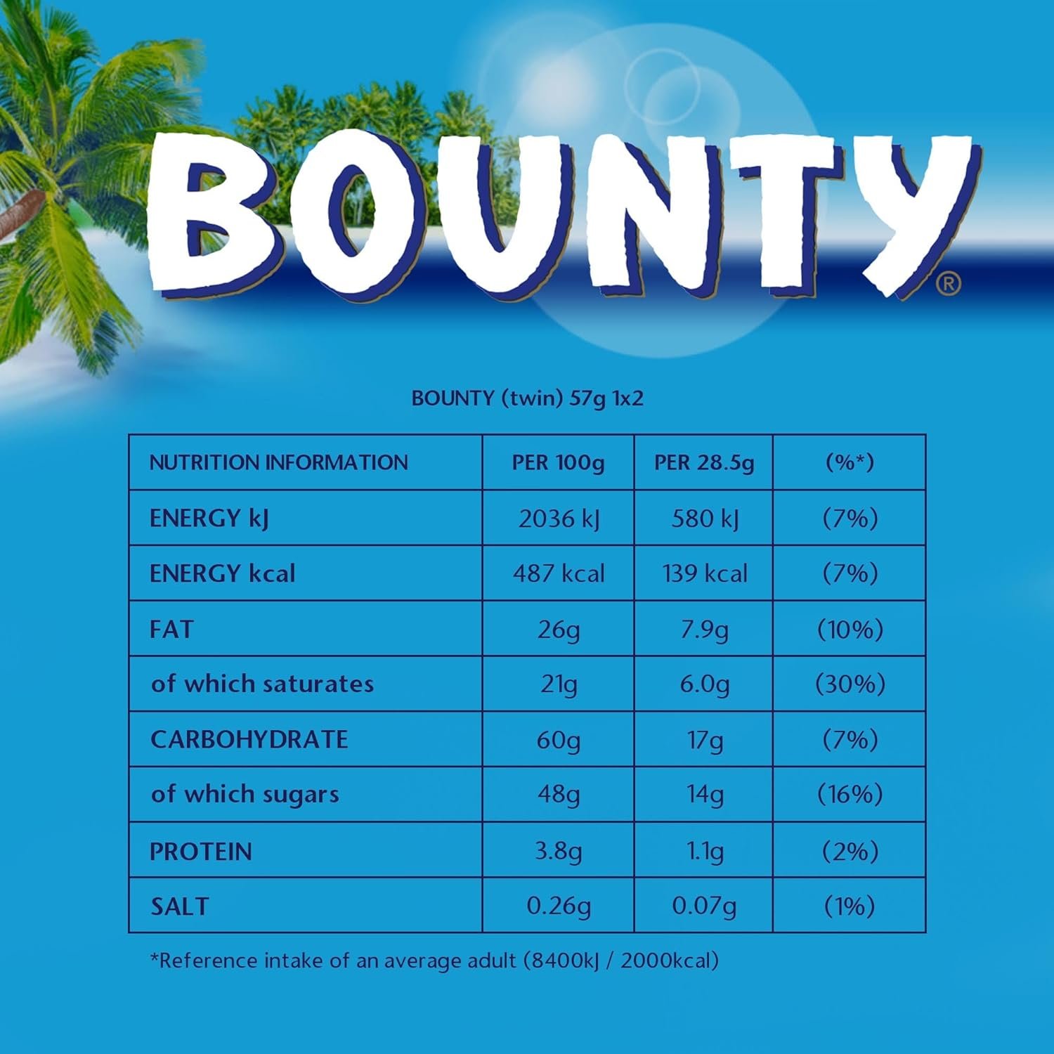 Bounty Chocolate Bars, Coconut & Milk Chocolate Bulk Box, 24 x 57g, Ideal for Gift, Snacks or Hamper