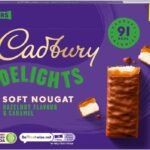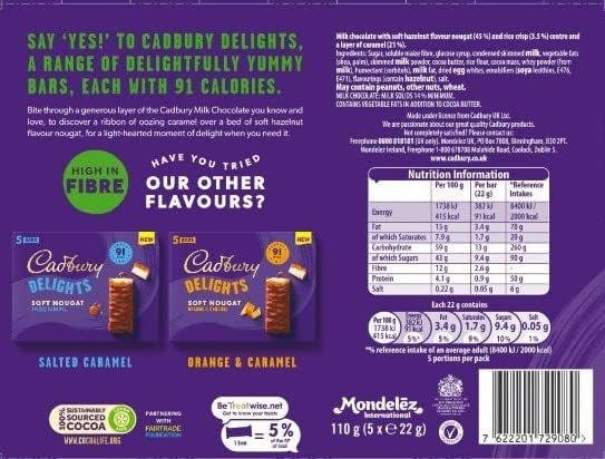 Cadbury Delights Soft Nougat Hazelnut Flavour & Caramel Bars, Chewy Nougat Bars With Hazelnut & Caramel, Multipack of 5 x 22 g (Pack of 9)