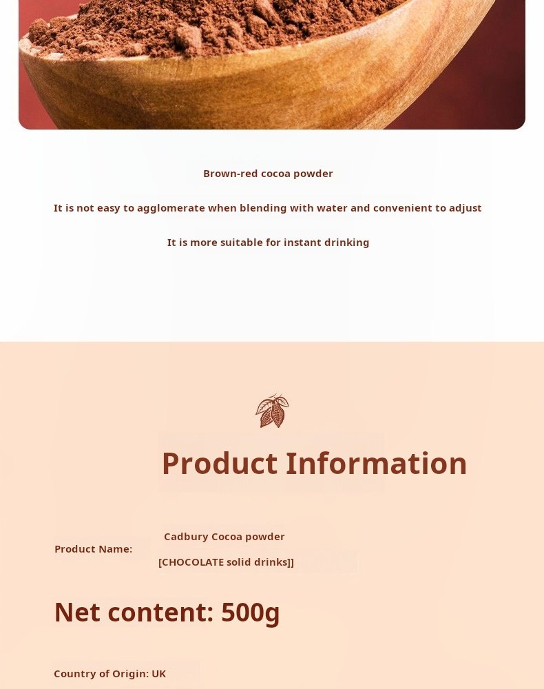 Additives‎Cadbury chocolate flavor, Fat-Reduced Cocoa Powder, MILK Chocolate, Cocoa BUTTER
