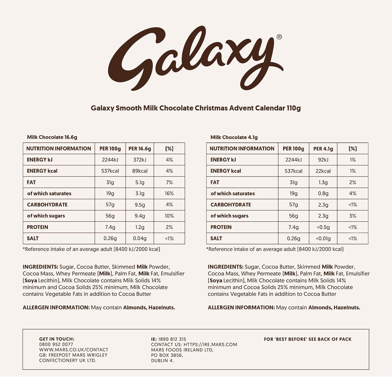 Galaxy Milk Chocolate Advent Calendar, 110g, Ideal for Christmas Chocolate Gift Box, or Snacks(pack of 3)