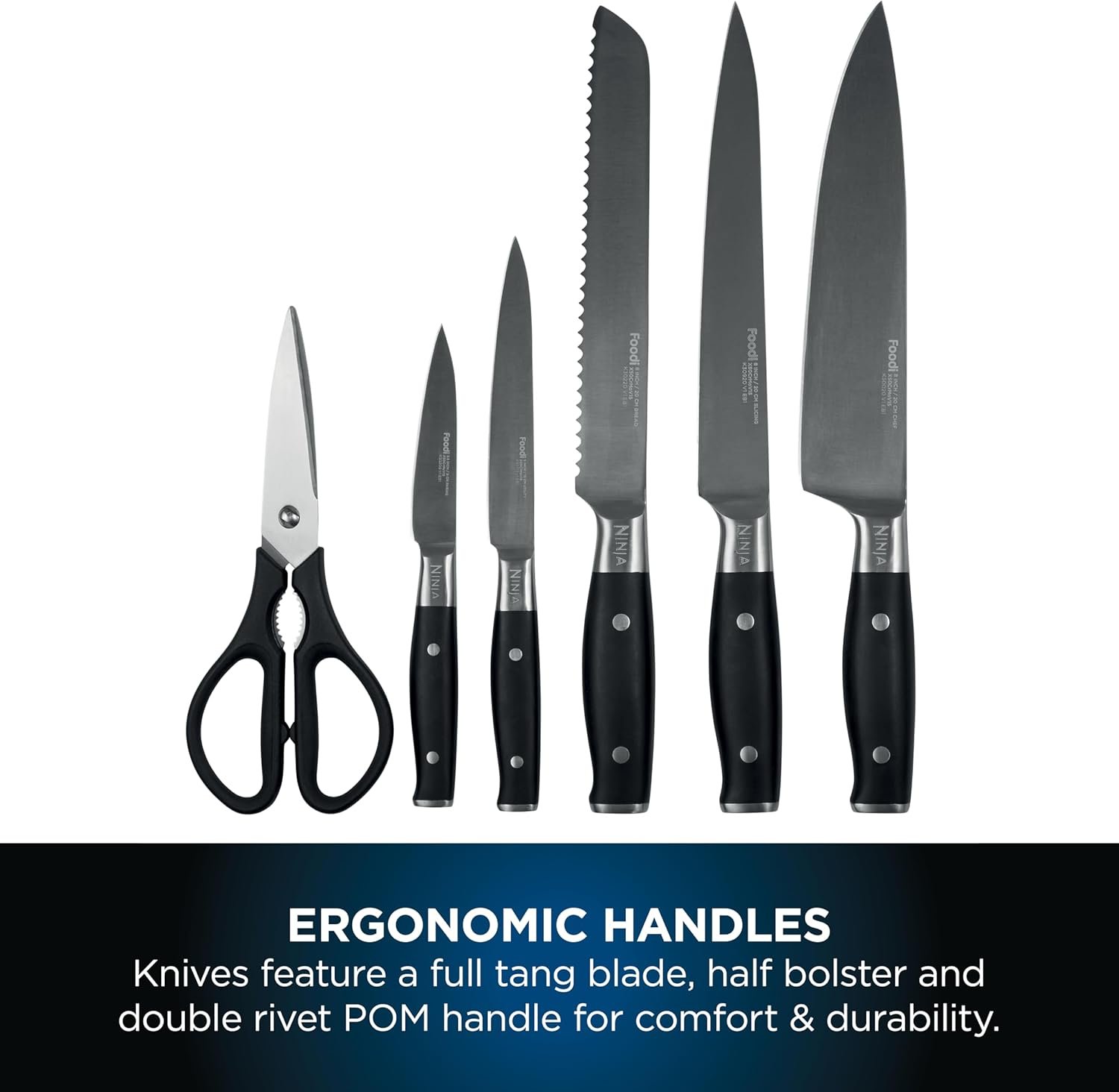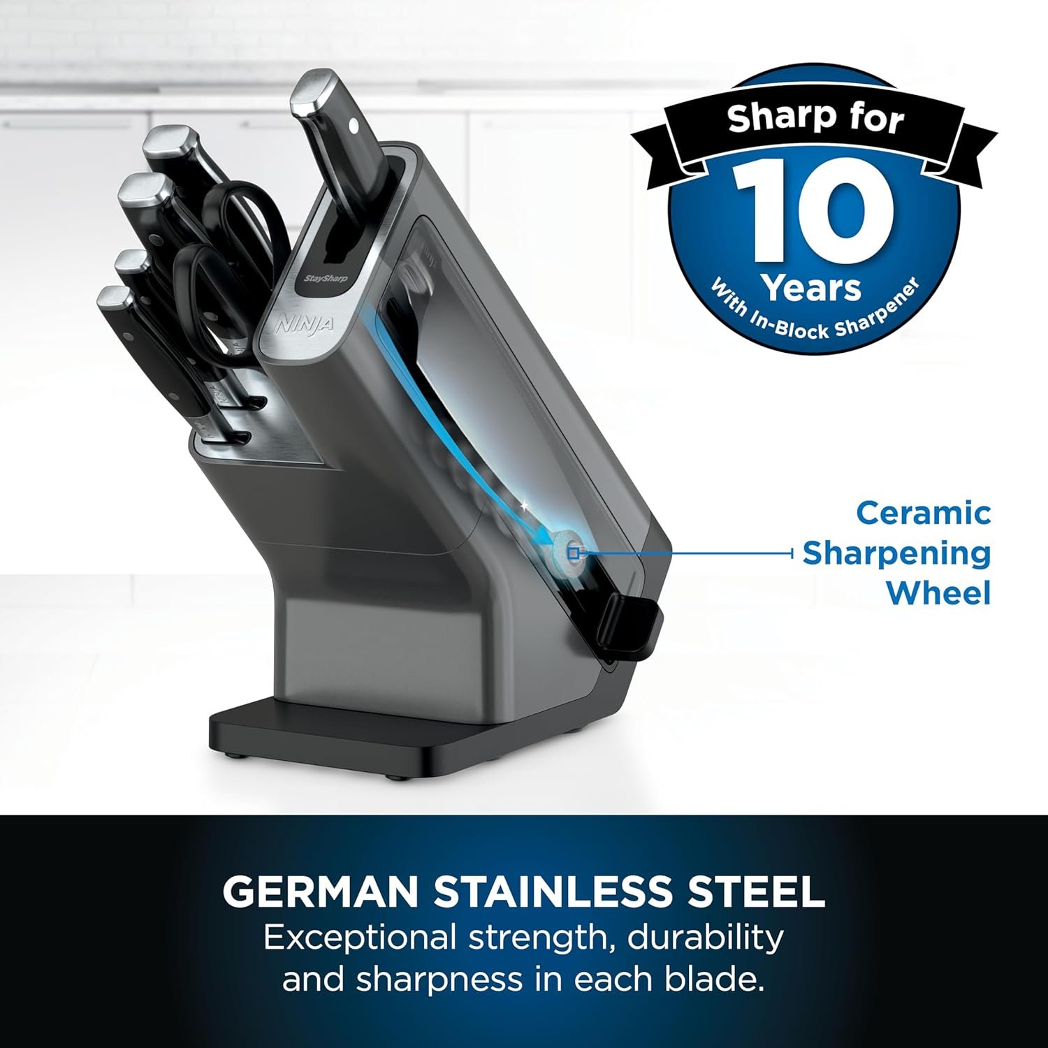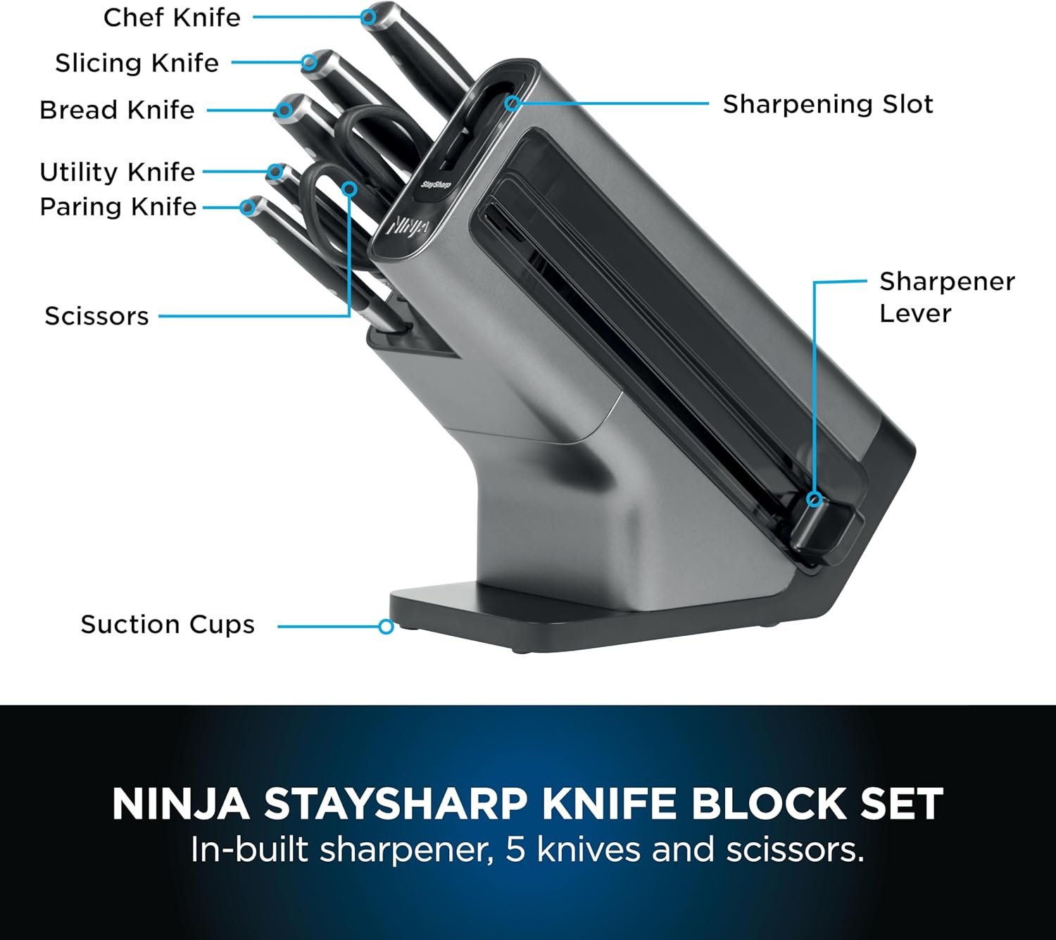 Ninja Foodi StaySharp Knife Block with Integrated Sharpener; 5 Knives and Scissors (1 pair), Sharp 6-Piece Knife Set; Chef, Bread, Slicing, Utility, Paring Knives & Scissors, Stainless Steel