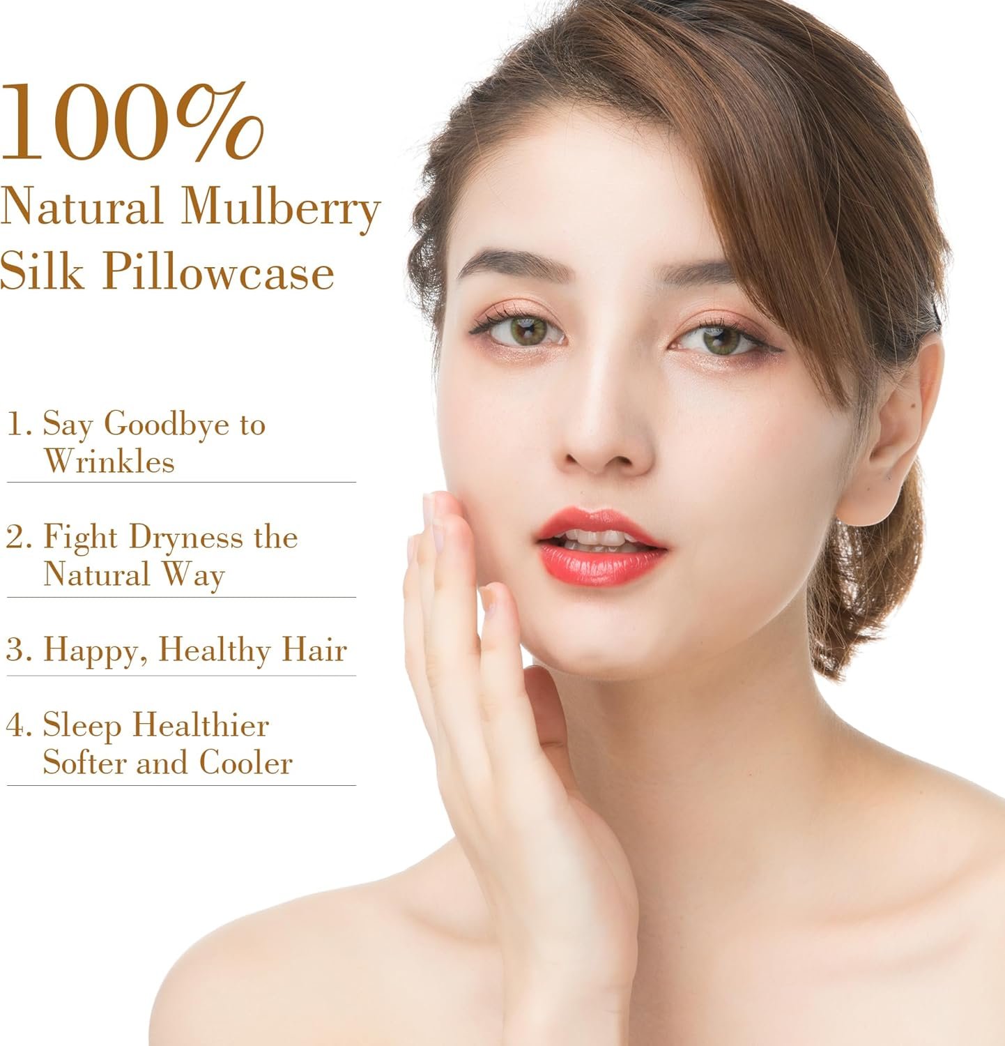Silk Pillowcase 2 Pack,100% Natural Mulberry Silk Pillowcase for Hair and Skin Health, Standard Size 50 x 75 cm Pillow Case(Overall size: 56 x 80 cm), Soft Smooth Cooling Pillow Covers for Sleeping